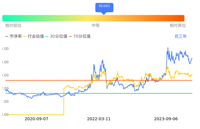 曲江文旅当前市净率PB为4.55,在所属的旅游及景区中,市净率PB排16,前五名分别为中青旅市净率1.48、黄山旅游市净率2.19、丽江股份市净率2.35、峨眉山A市净率2.37、三特索道市净率2.42。曲江文旅当前市净率PB为4.55,超过近3年90.66%的历史数据。