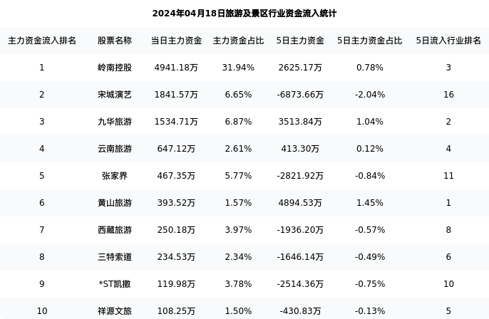 从主力资金流向来看,旅游及景区行业今日主力资金流入15.16亿元,在所有申万二级行业中排名:122/131。