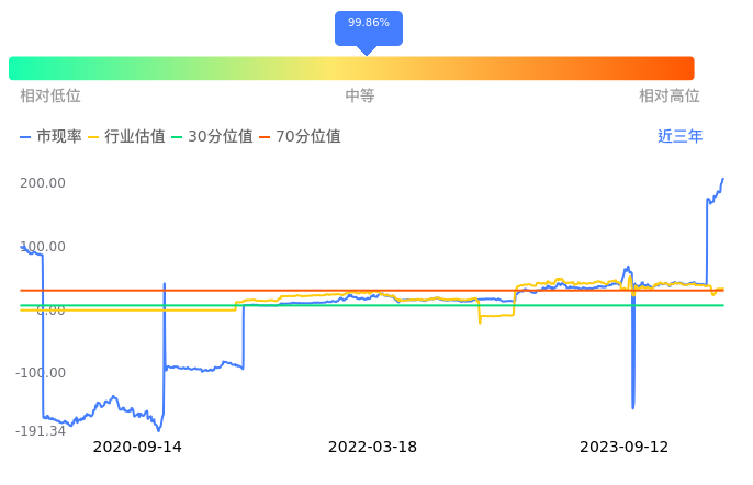 曲江文旅当前市现率为207.68,在所属的旅游及景区中,市现率排17,前5名分别为、三特索道市现率9.66、九华旅游市现率13.03、丽江股份市现率16.43、天目湖市现率16.49、大连圣亚市现率17.96。曲江文旅当前市现率为207.68,超过近3年99.86%的历史数据。