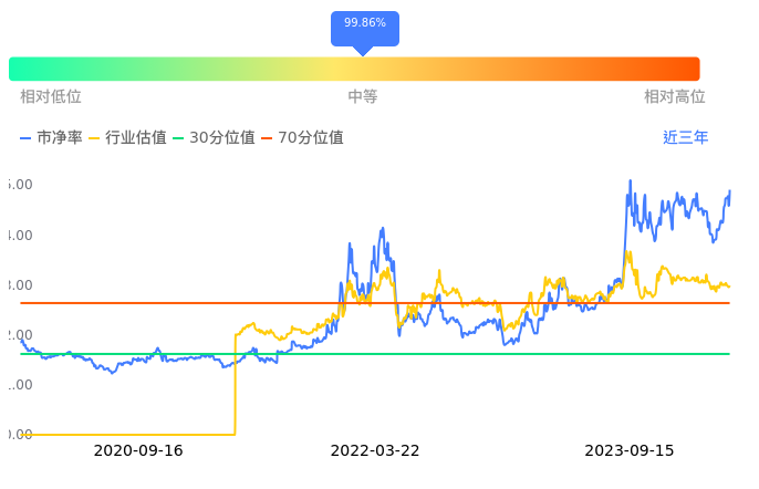 曲江文旅当前市净率PB为4.91,在所属的旅游及景区中,市净率PB排16,前五名分别为中青旅市净率1.48、黄山旅游市净率2.20、丽江股份市净率2.31、三特索道市净率2.36、峨眉山A市净率2.37。曲江文旅当前市净率PB为4.91,超过近3年99.86%的历史数据。