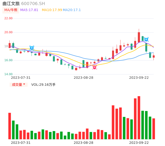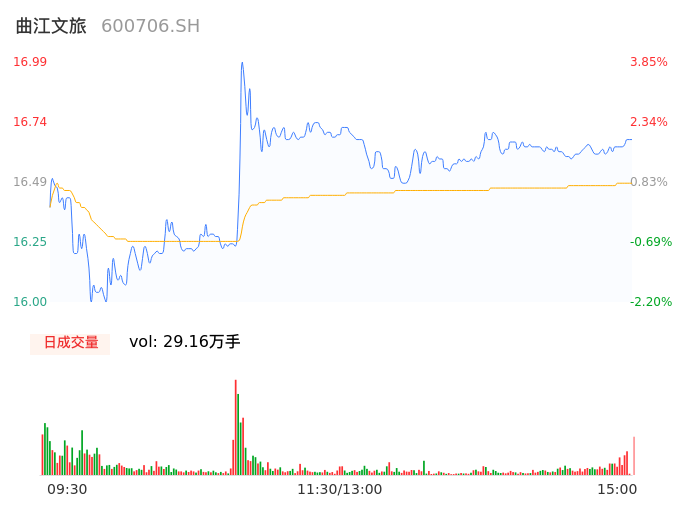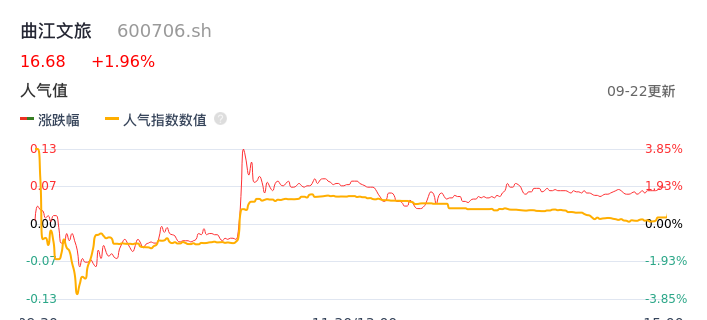 09月22日,曲江文旅收报16.68,股价涨幅1.96%,成交金额4.81亿元,换手率11.48%。