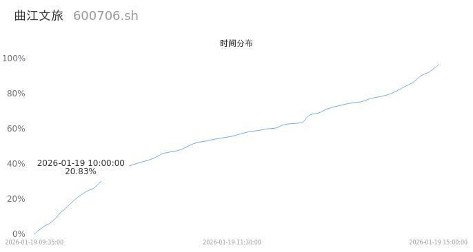 600706曲江文旅2026年01月19日成交26.03万手,成交金额2.95亿,相较昨日放量2.62万手,换手率10.25%,成交活跃。
