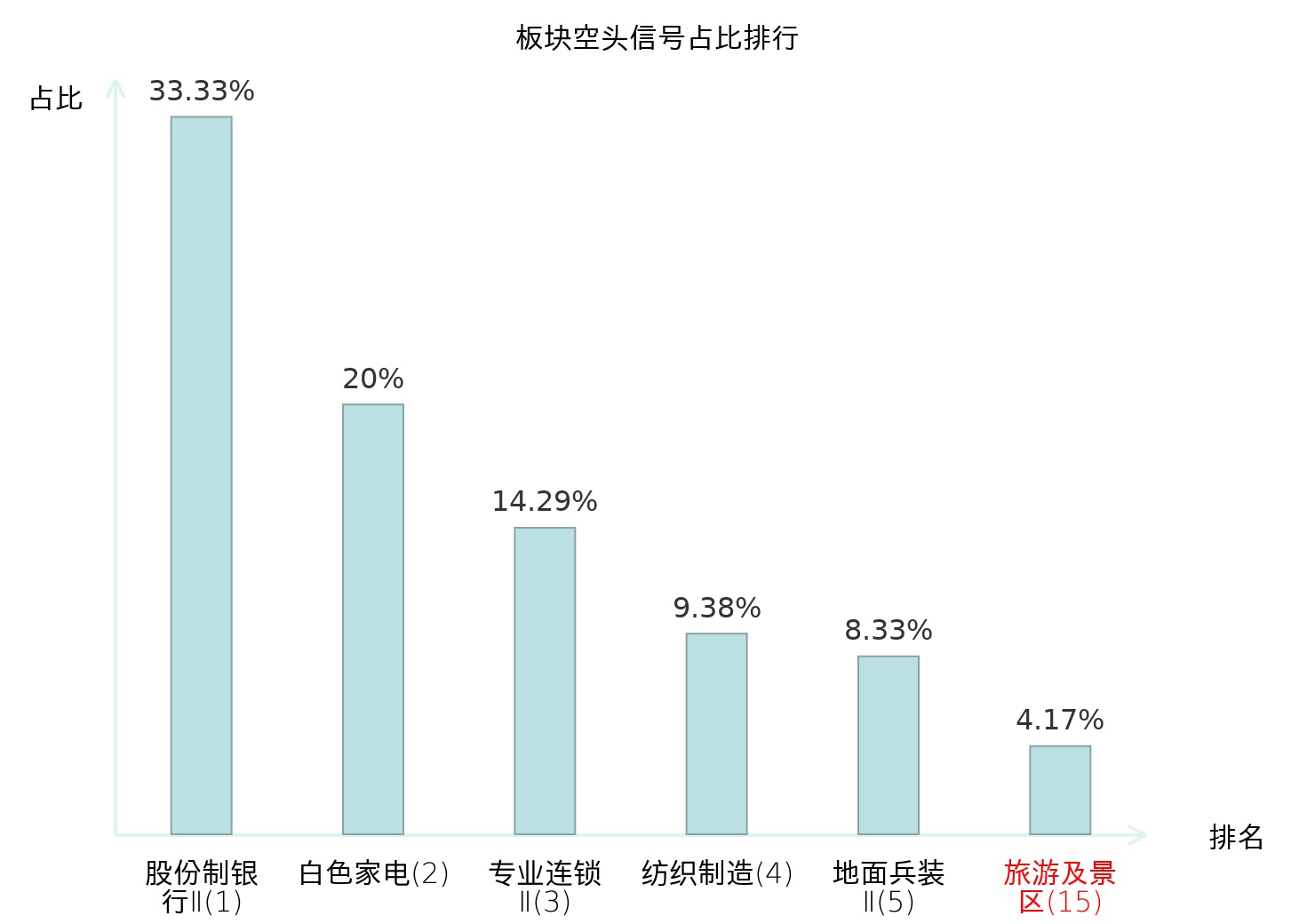 全市场所有行业板块中主力空头信号占比排名中,股份制银行Ⅱ板块位居第一。塑料板块名次提升最快,较昨日上升111位。