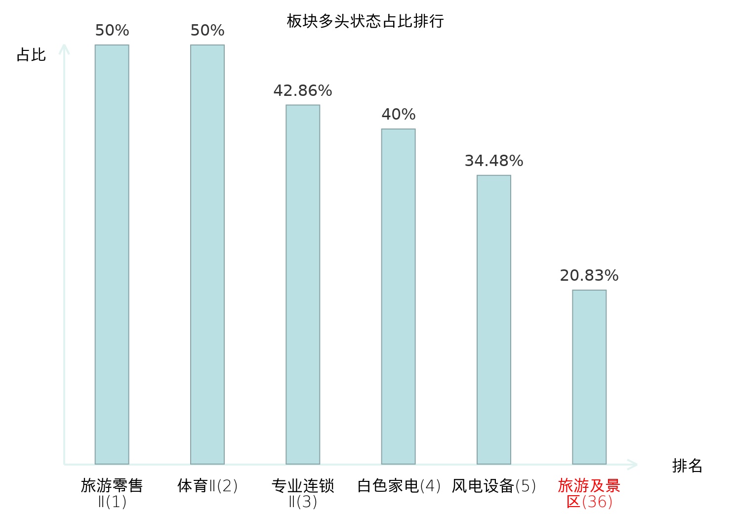 全市场所有行业板块中主力多头状态占比排名中,旅游零售Ⅱ板块位居第一。能源金属板块名次提升最快,较昨日上升50位。