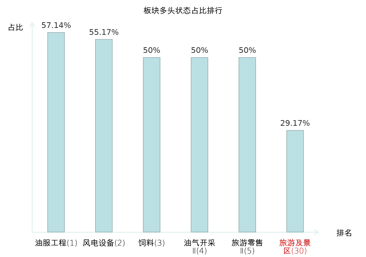全市场所有行业板块中主力多头状态占比排名中,油服工程板块位居第一。非金属材料Ⅱ板块名次提升最快,较昨日上升67位。