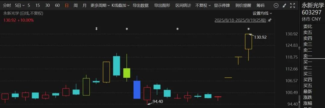 永新光学(603297)连续3日涨停,长飞光纤4日3涨停,凯美特气3日2涨停,海光信息、北方华创、中芯国际、沪电股份等头部上市公司股价本周纷纷创出历史新高。