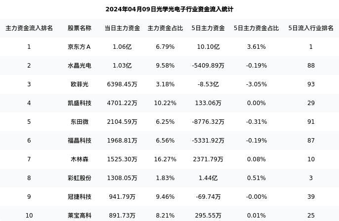 下表为今日行业内流入前10股票的信息