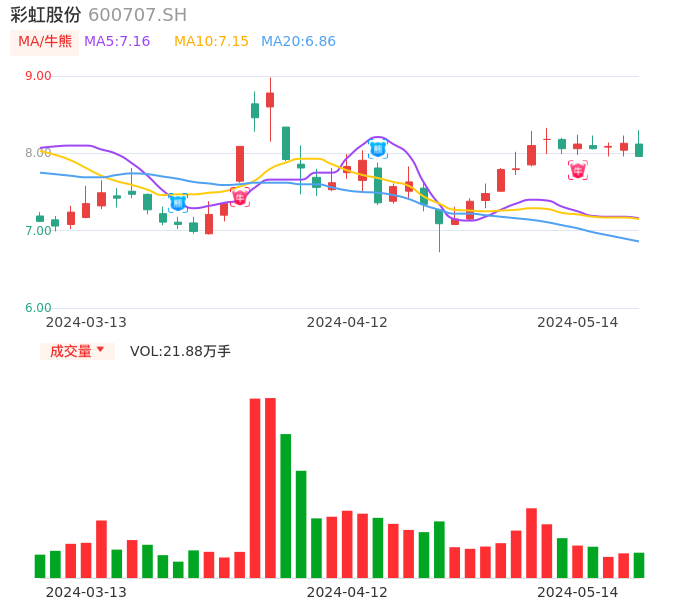 05月14日,彩虹股份收报7.96,股价涨幅-2.09%,成交金额1.77亿元,换手率0.61%。