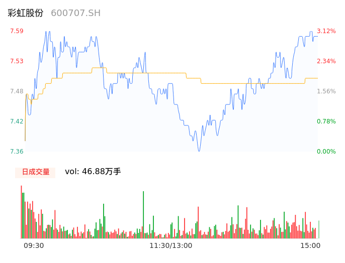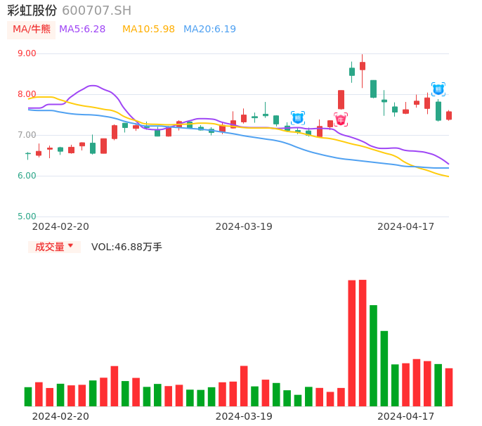 04月17日,彩虹股份收报7.57,股价涨幅2.85%,成交金额3.52亿元,换手率1.31%。