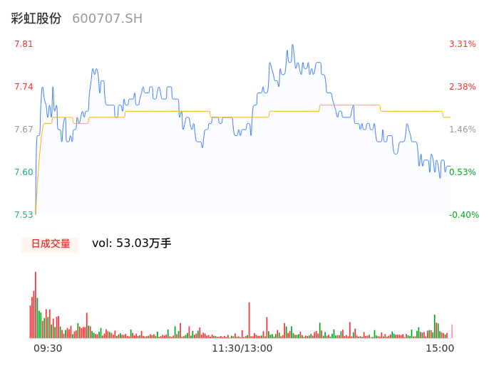 04月11日,彩虹股份收报7.62,股价涨幅0.79%,成交金额4.08亿元,换手率1.48%。