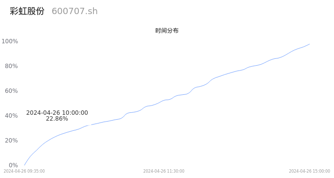 600707彩虹股份2024年04月26日成交30.14万手,成交金额2.32亿元,相较昨日放量2.92万手,换手率0.84%,成交清淡。