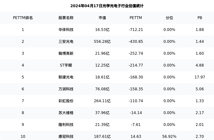 彩虹股份最新报告期数据为三季度,下表汇总了光学光电子行业内市值靠前的公司三季度主要经营数据