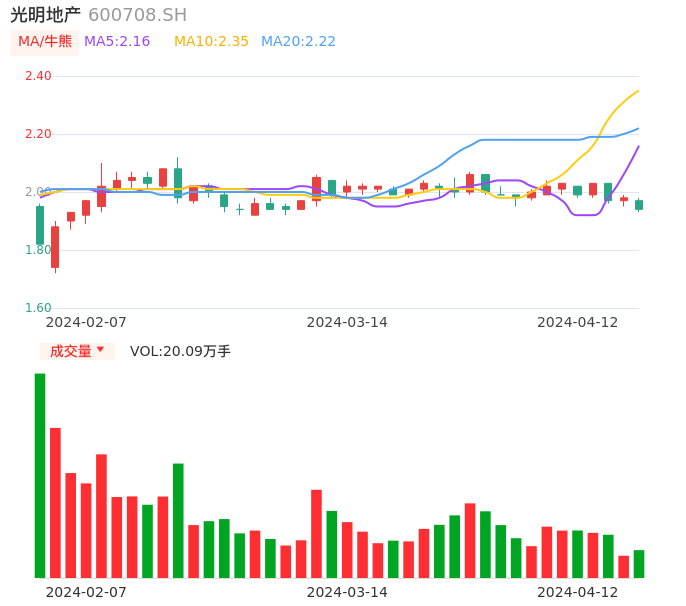 04月12日,光明地产收报1.94,股价涨幅-2.02%,成交金额3929.14万元,换手率0.90%。