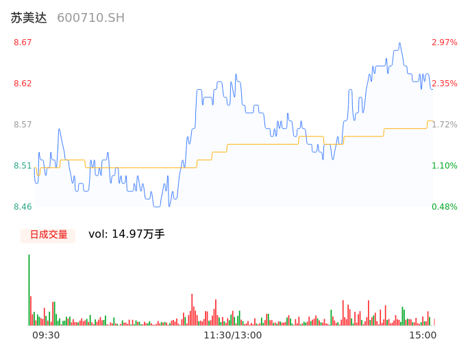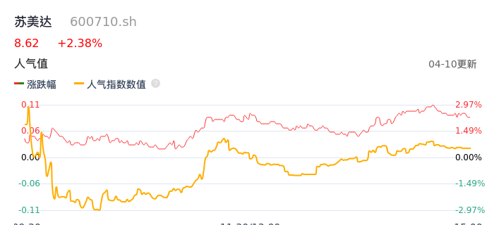 04月10日,苏美达收报8.62,股价涨幅2.38%,成交金额1.28亿元,换手率1.15%。