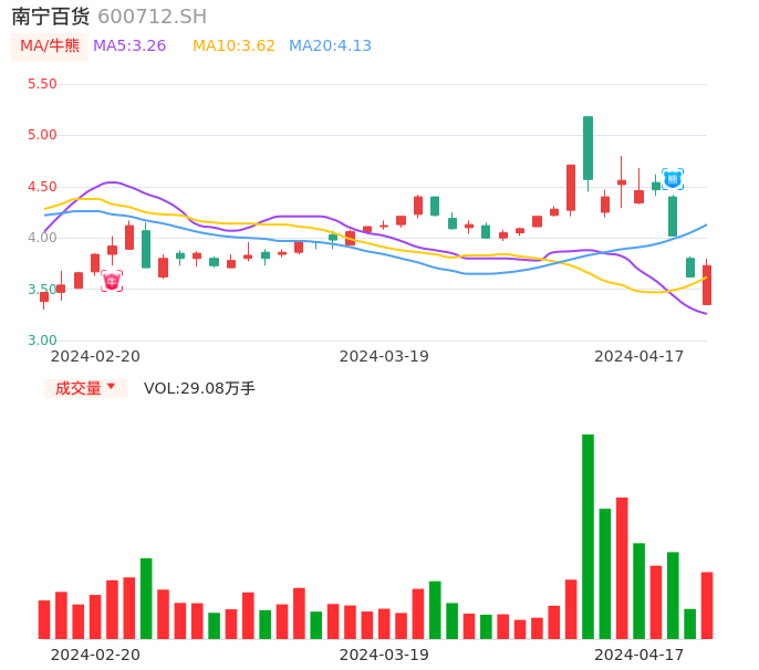 04月17日,南宁百货收报3.73,股价涨幅3.04%,成交金额1.07亿元,换手率5.40%。