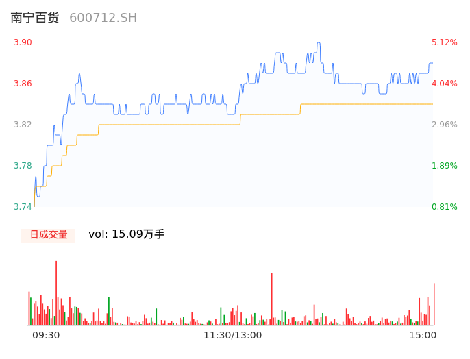04月29日,南宁百货收报3.88,股价涨幅4.58%,成交金额5798.87万元,换手率2.80%。