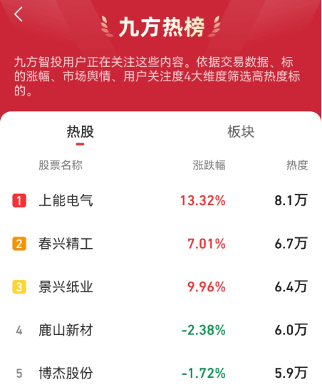 九方智投:上能电气、春兴精工、景兴纸业、鹿山新材、博杰股份