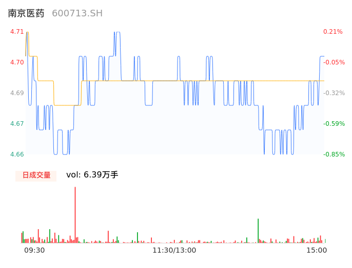 04月24日,南京医药收报4.69,股价涨幅-0.21%,成交金额2995.39万元,换手率0.61%。