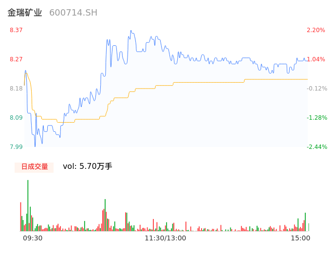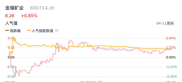 04月11日,金瑞矿业收报8.26,股价涨幅0.85%,成交金额4685.17万元,换手率1.98%。