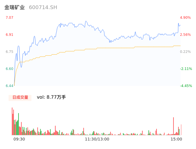 04月17日,金瑞矿业收报7.07,股价涨幅4.90%,成交金额5978.09万元,换手率3.04%。