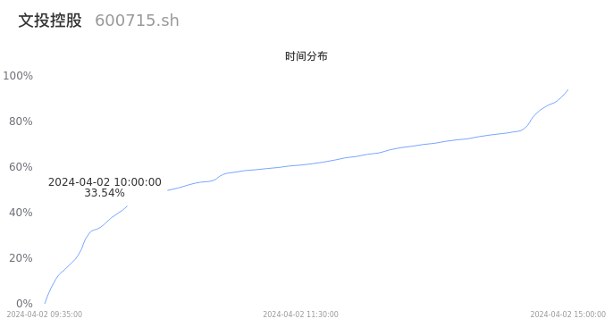 600715文投控股2024年04月02日成交93.43万手,成交金额2.76亿元,相较昨日缩量32.87万手,换手率5.04%,成交清淡。