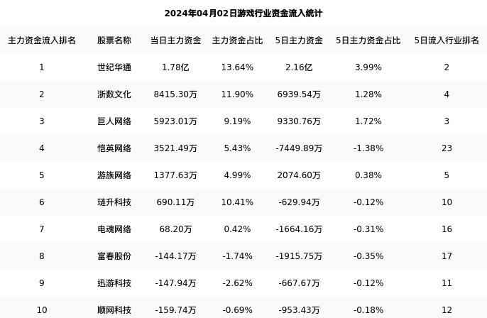 从主力资金流向来看,游戏行业今日主力资金流入49.89亿元,在所有申万二级行业中排名:23/131。