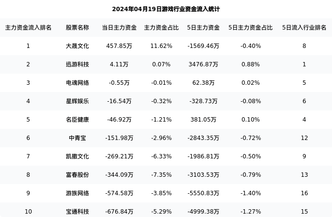 从主力资金流向来看,游戏行业今日主力资金流入20.26亿元,在所有申万二级行业中排名:118/131。