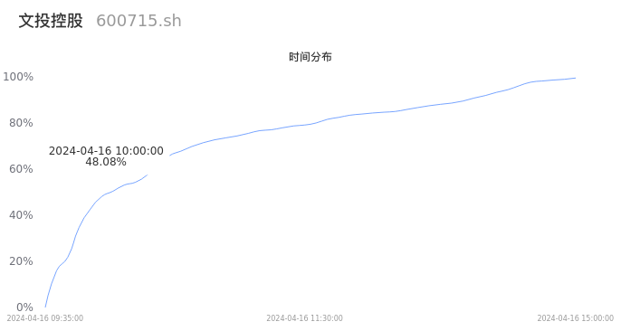 600715文投控股2024年04月16日成交109.74万手,成交金额2.35亿元,相较昨日缩量11.69万手,换手率5.92%,成交清淡。