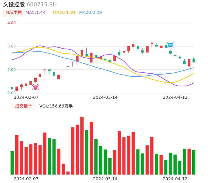 04月12日,文投控股收报2.32,股价涨幅-5.69%,成交金额3.74亿元,换手率8.45%。