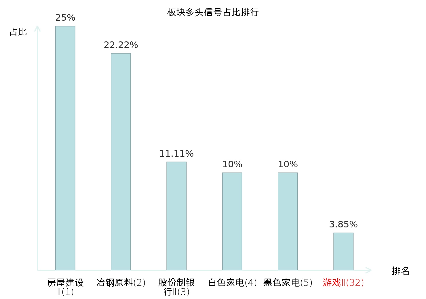 全市场所有行业板块中主力多头信号占比排名中,房屋建设Ⅱ板块位居第一。房屋建设Ⅱ板块名次提升最快,较昨日上升119位。