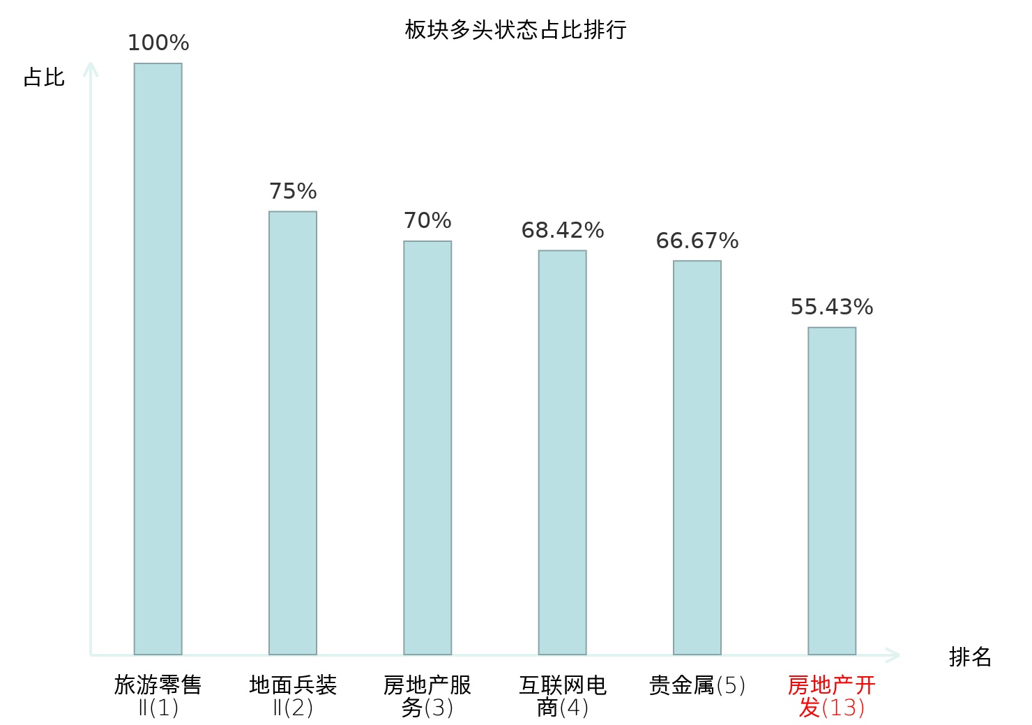 全市场所有行业板块中主力多头状态占比排名中,旅游零售Ⅱ板块位居第一。白色家电板块名次提升最快,较昨日上升65位。