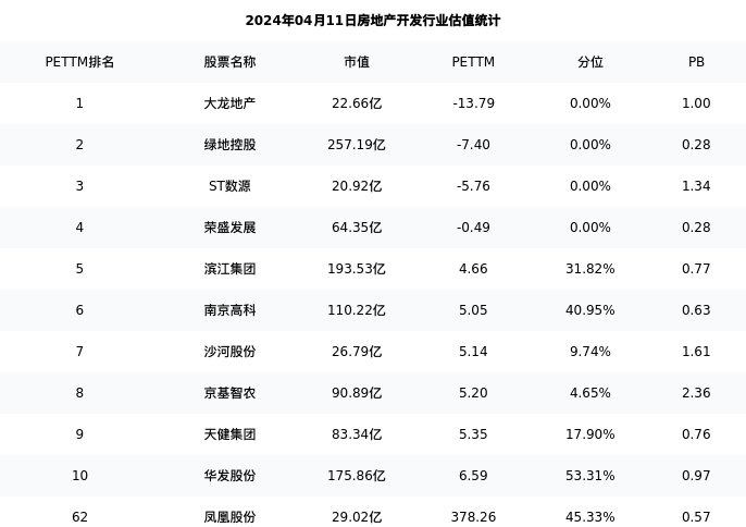 从估值角度看:凤凰股份最新市盈率PETTM为378.26,在行业内排名62/97,处于45.33分位。