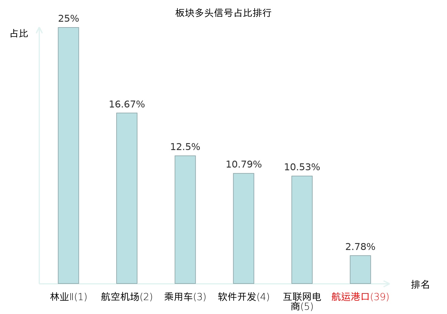 全市场所有行业板块中主力多头信号占比排名中,林业Ⅱ板块位居第一。林业Ⅱ板块名次提升最快,较昨日上升125位。