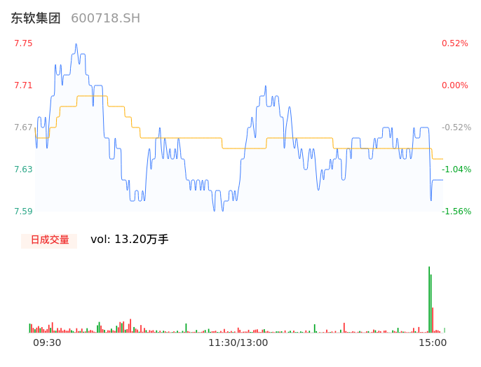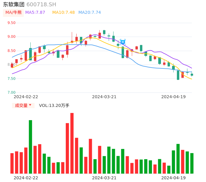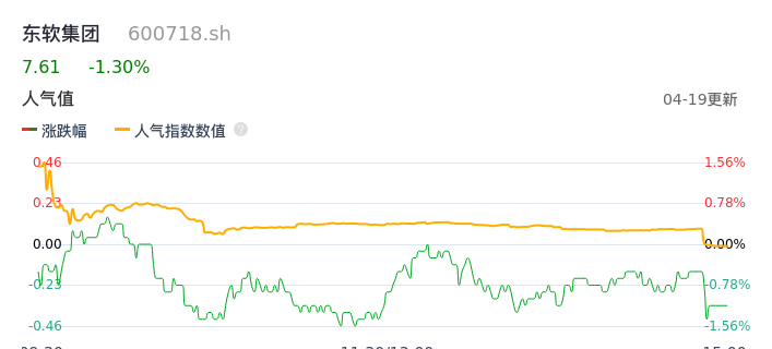 04月19日,东软集团收报7.61,股价涨幅-1.30%,成交金额1.01亿元,换手率1.10%。