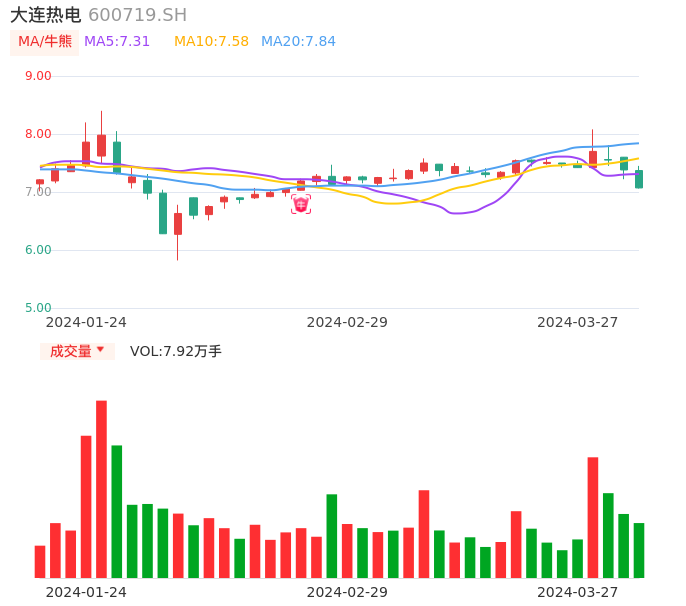 03月27日,大连热电收报7.07,股价涨幅-4.20%,成交金额5738.21万元,换手率1.96%。