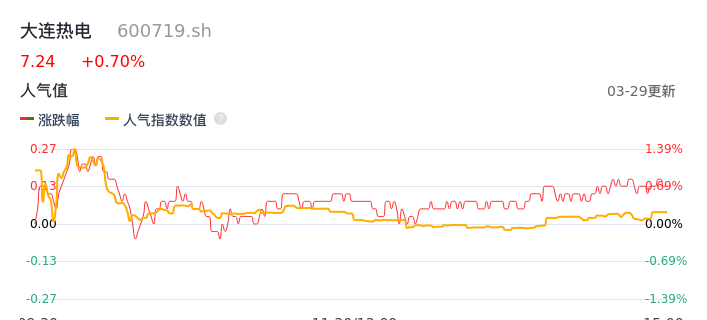 03月29日,大连热电收报7.24,股价涨幅0.70%,成交金额2743.02万元,换手率0.94%。