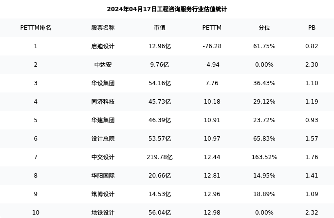 从估值角度看:中交设计最新市盈率PETTM为12.44,在行业内排名5/41,处于163.52分位。