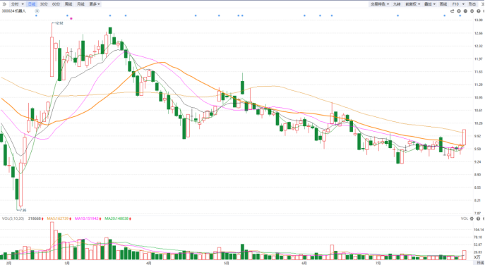 从板块指数来看,机器人概念今日一阳穿多线+主力净买额大幅增加,说明有主力资金抄底,板块可能会迎来持续性炒作,建议大家可以多跟踪板块内优质个股的逢低吸纳机会。