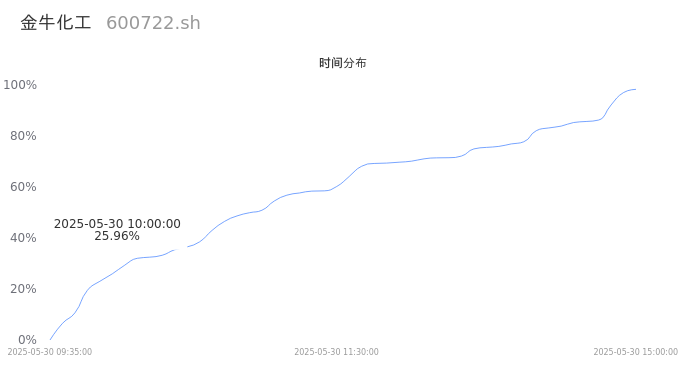 600722金牛化工2025年05月30日成交8.81万手,成交金额4451.37万,相较昨日放量1.08万手,换手率1.30%,成交清淡。