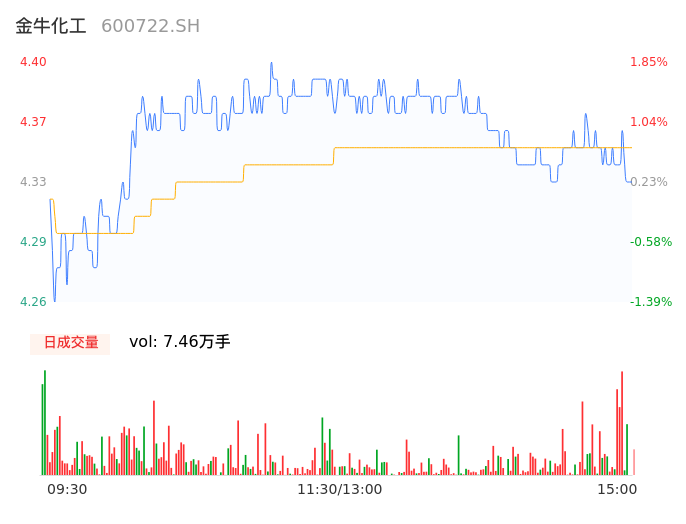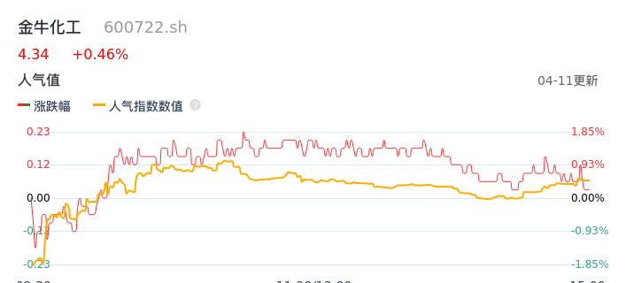 04月11日,金牛化工收报4.34,股价涨幅0.46%,成交金额3245.40万元,换手率1.10%。