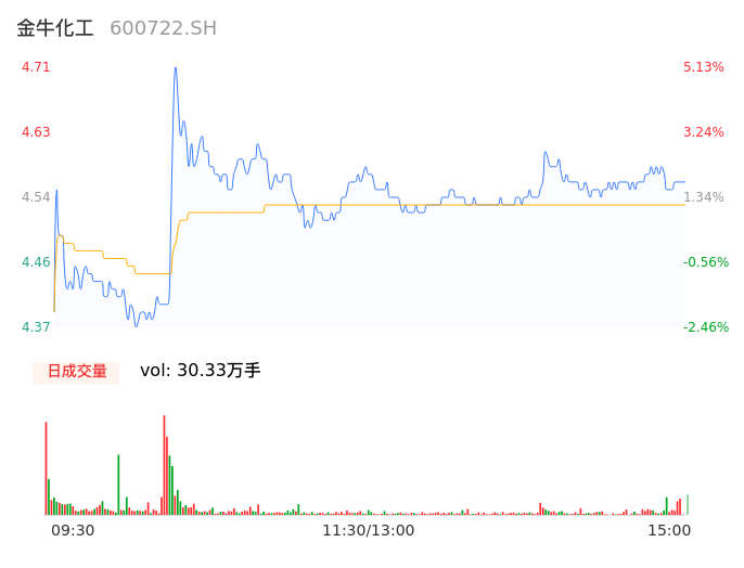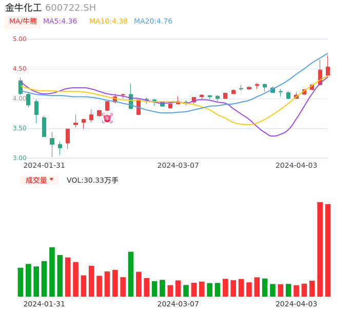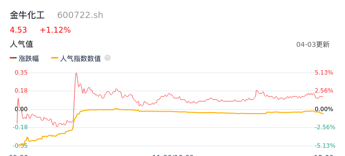 04月03日,金牛化工收报4.53,股价涨幅1.12%,成交金额1.37亿元,换手率4.46%。