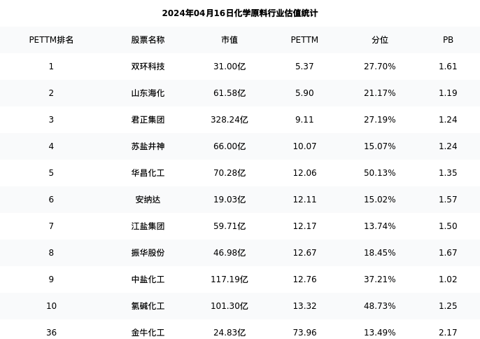 从估值角度看:金牛化工最新市盈率PETTM为73.96,在行业内排名37/55,处于13.49分位。
