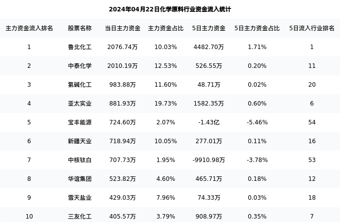 从主力资金流向来看,化学原料行业今日主力资金流入16.54亿元,在所有申万二级行业中排名:18/131。