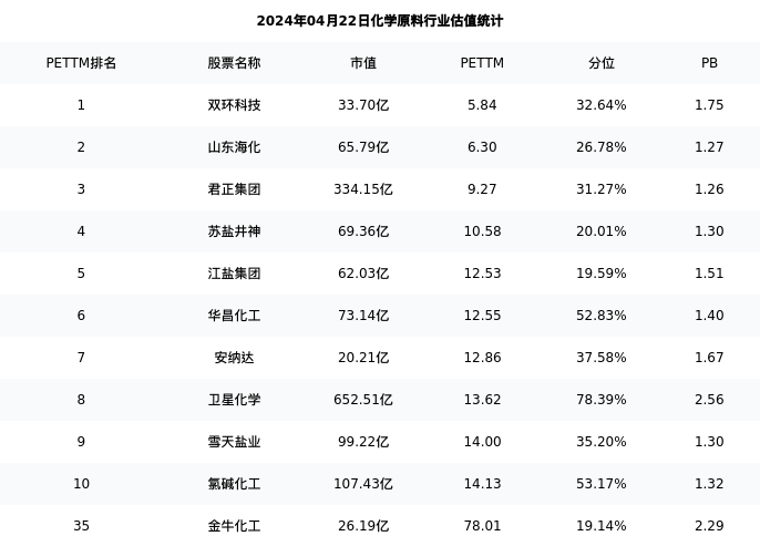 从估值角度看:金牛化工最新市盈率PETTM为78.01,在行业内排名36/55,处于19.14分位。
