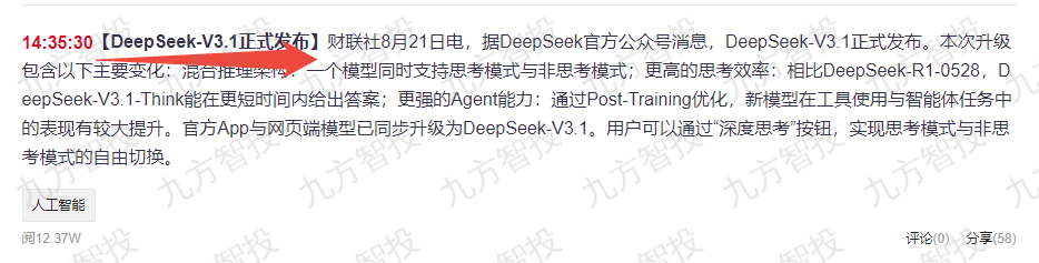 Deepseek在周二晚间发布了V3.1版本,编程能力基本追上了claude4.1,但在昨天的市场并没有掀起什么浪花(主要是资金在半导体和国产算力方向),存在一定的市场延迟反应的预期差的。