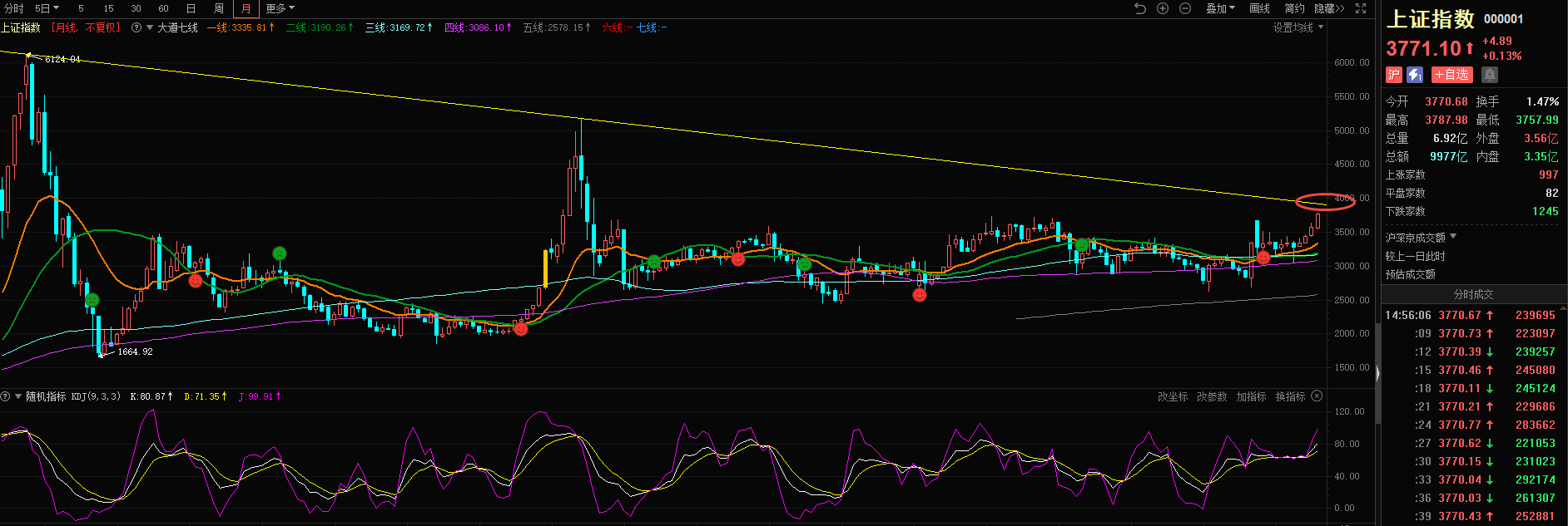 这点大家可以从月线中也能看的出来,向上仍有空间。第一目标在3900-4000点附近。
