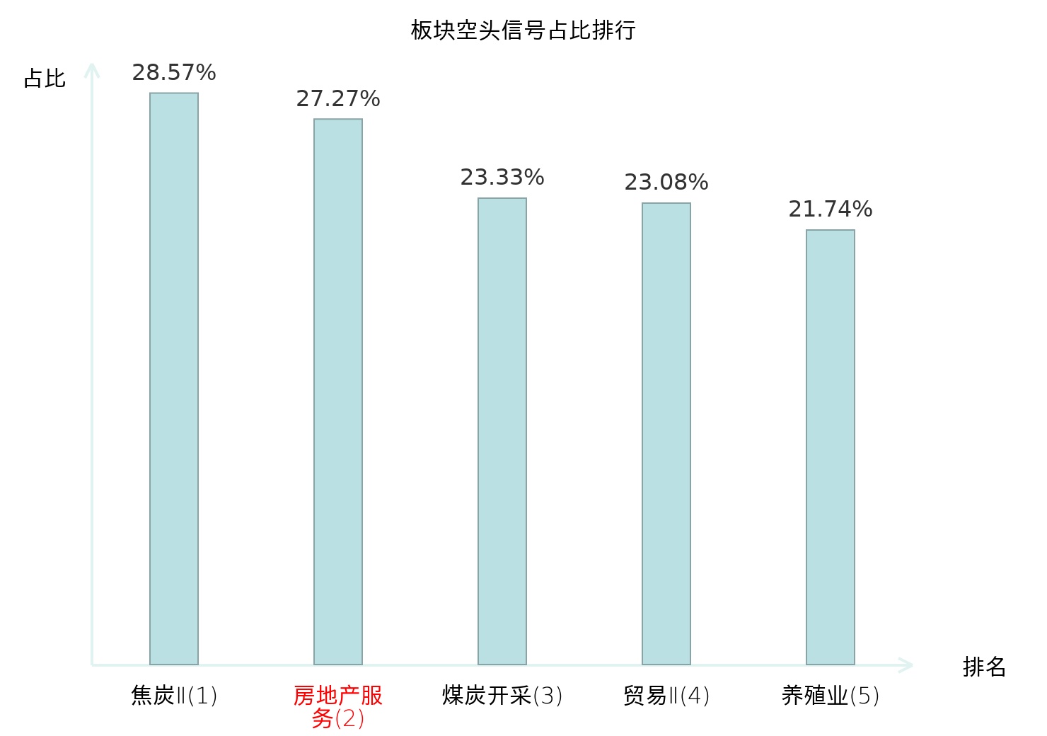全市场所有行业板块中主力空头信号占比排名中,焦炭Ⅱ板块位居第一。养殖业板块名次提升最快,较昨日上升107位。