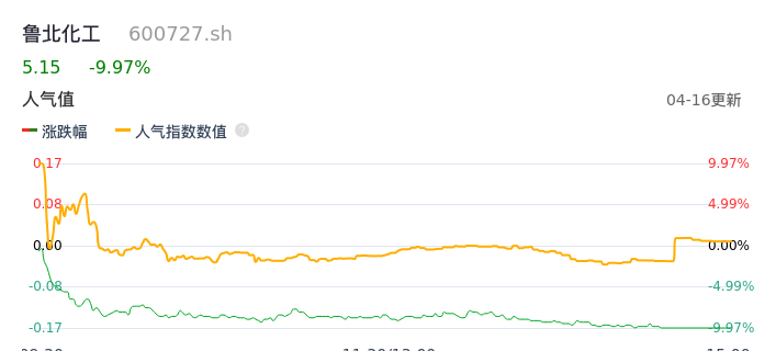 04月16日,鲁北化工收报5.15,股价涨幅-9.97%,成交金额8194.90万元,换手率2.94%。