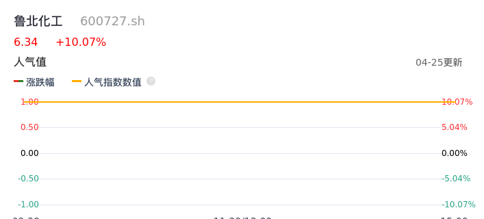 04月25日,鲁北化工收报6.34,股价涨幅10.07%,成交金额7175.20万元,换手率2.14%。