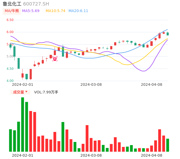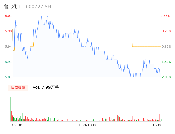 04月08日,鲁北化工收报5.87,股价涨幅-2.00%,成交金额4742.33万元,换手率1.51%。